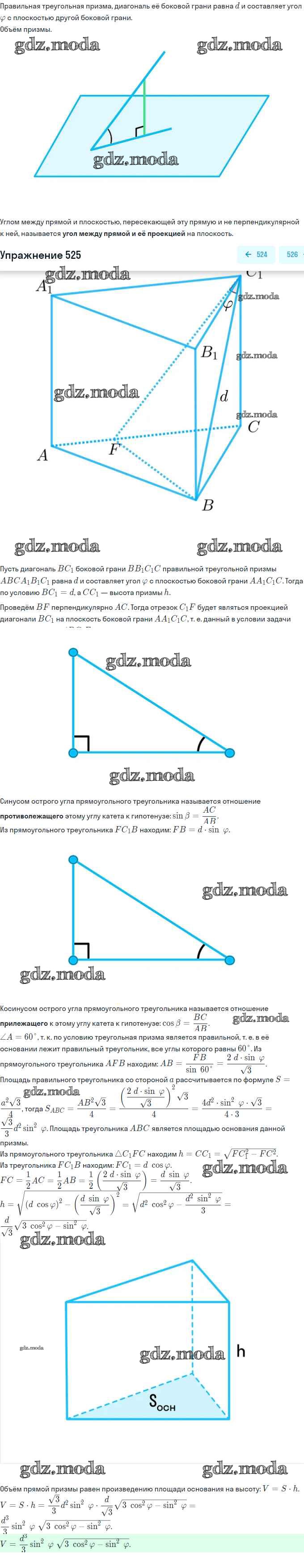 ОТВЕТ на задание № 525 Учебник по Геометрии 10-11 класс Атанасян Базовый и углубленный уровень