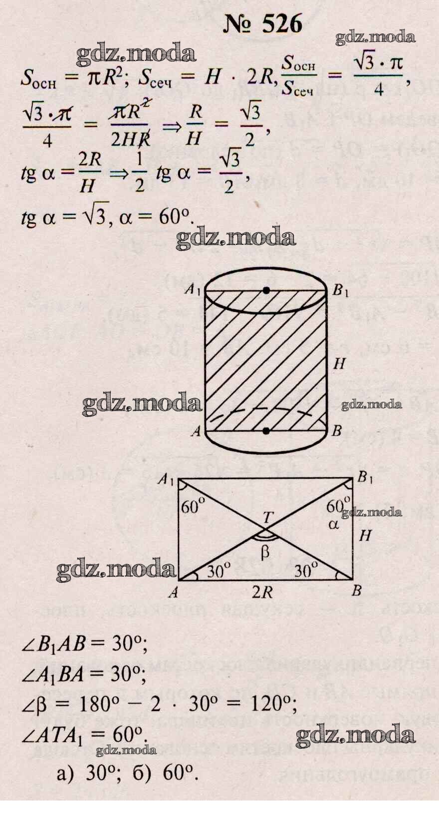 ОТВЕТ на задание № 526 Учебник по Геометрии 10-11 класс Атанасян Базовый и углубленный уровень