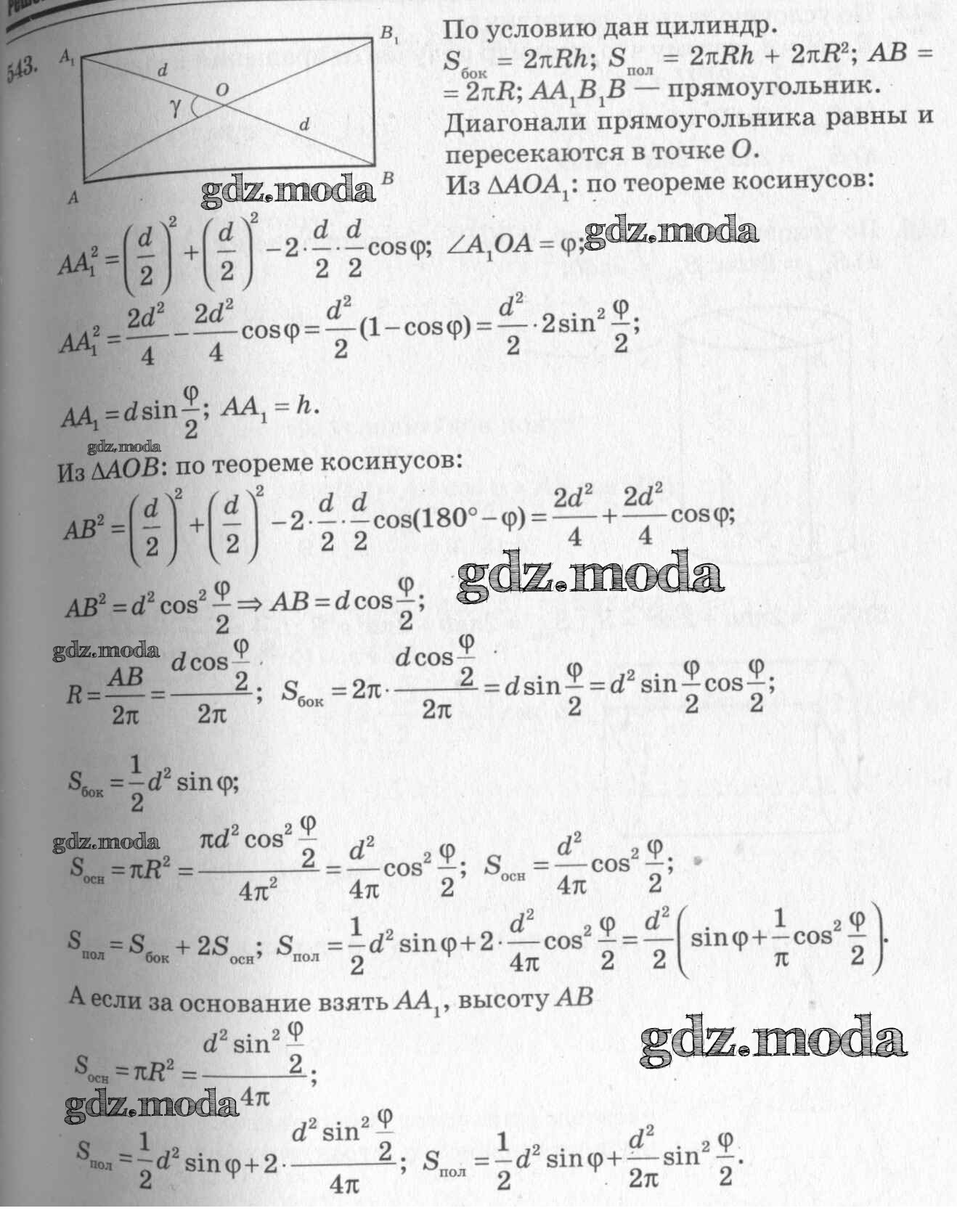 ОТВЕТ на задание № 543 Учебник по Геометрии 10-11 класс Атанасян Базовый и углубленный уровень