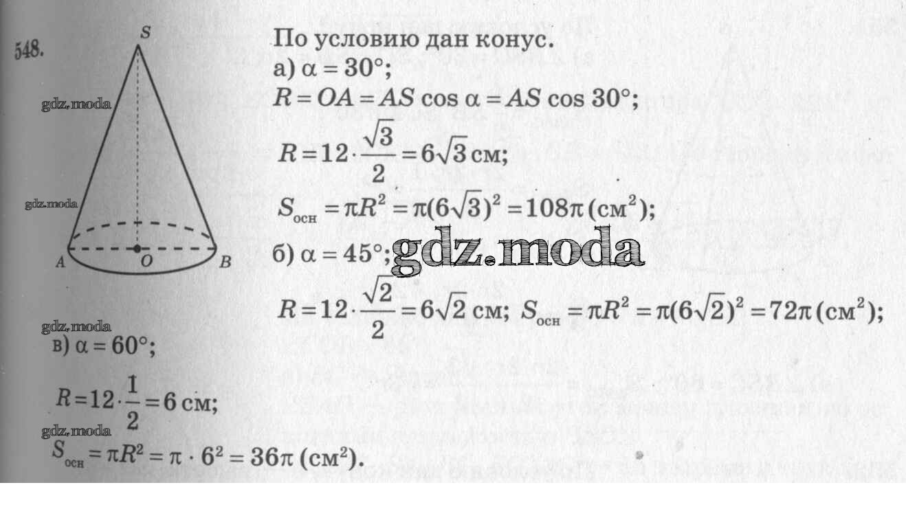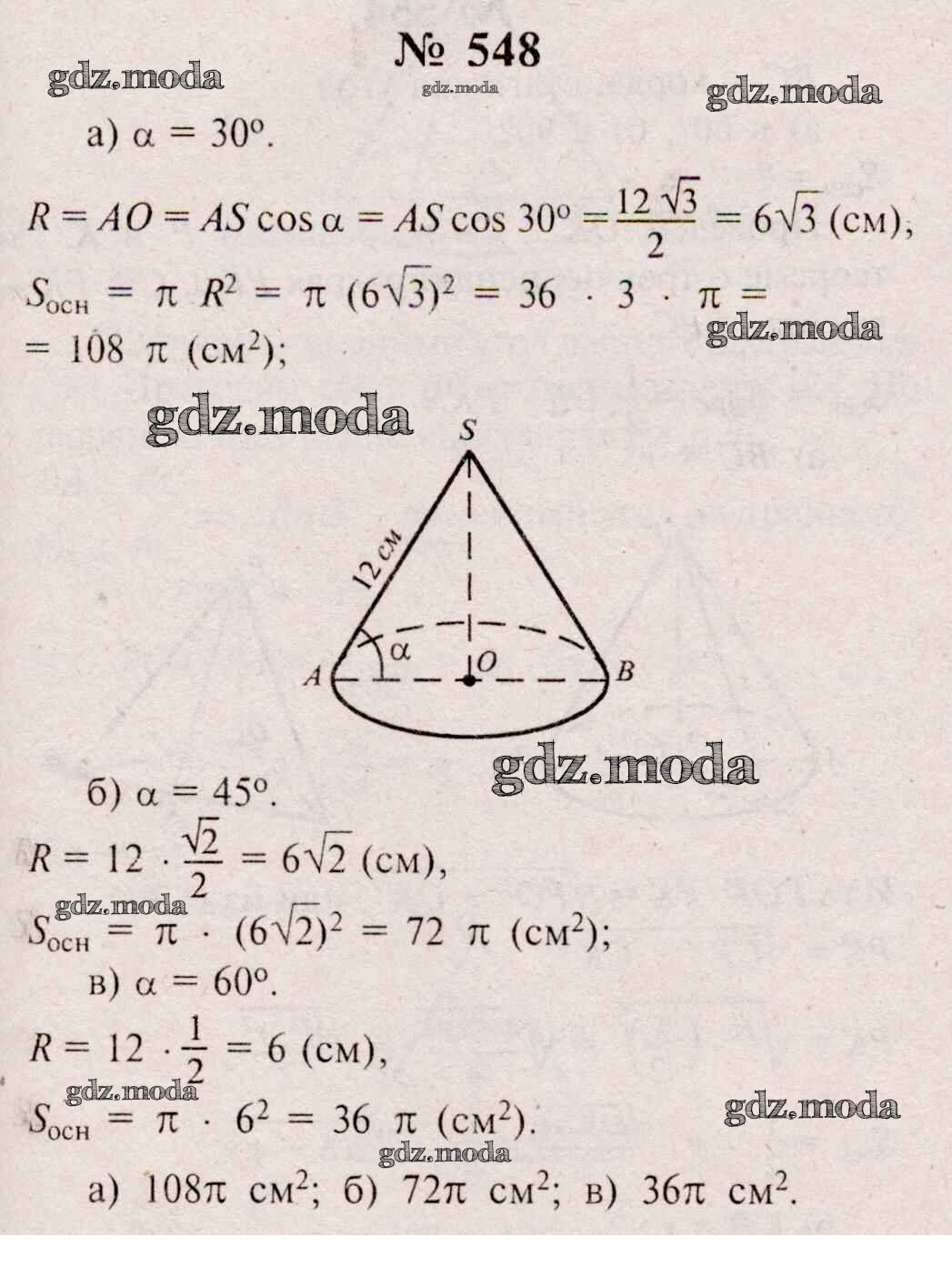 ОТВЕТ на задание № 548 Учебник по Геометрии 10-11 класс Атанасян Базовый и углубленный уровень