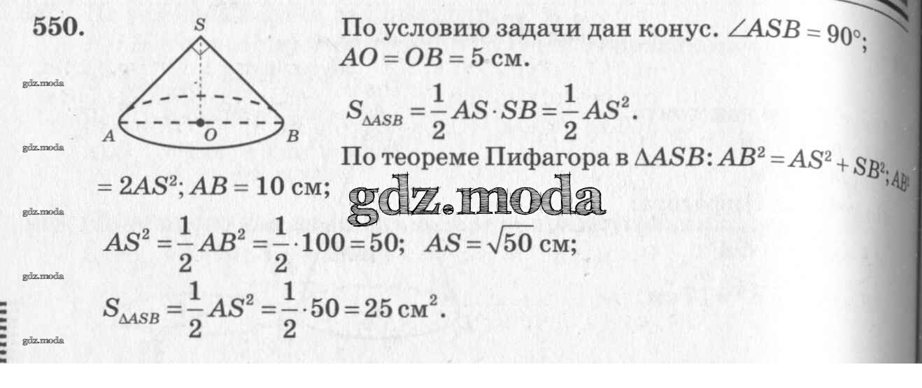 ОТВЕТ на задание № 550 Учебник по Геометрии 10-11 класс Атанасян Базовый и углубленный уровень