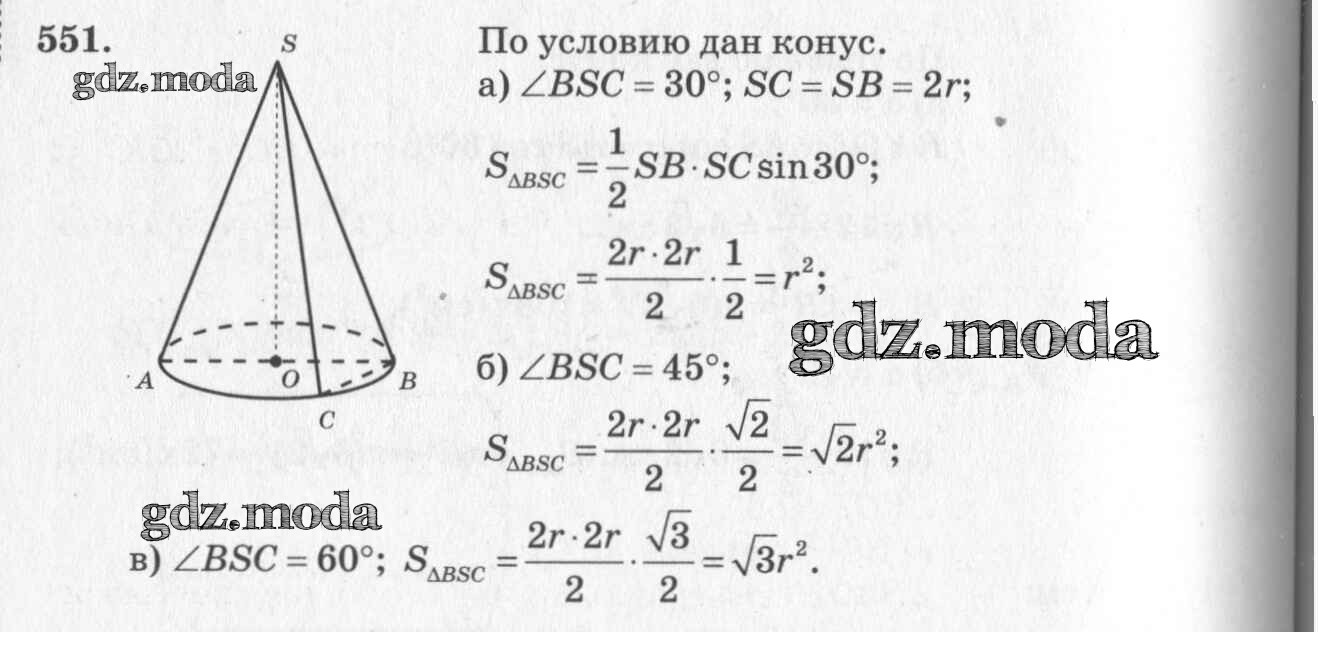ОТВЕТ на задание № 551 Учебник по Геометрии 10-11 класс Атанасян Базовый и углубленный уровень
