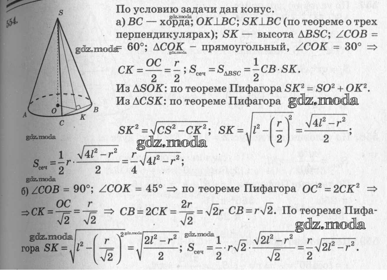 ОТВЕТ на задание № 554 Учебник по Геометрии 10-11 класс Атанасян Базовый и углубленный уровень