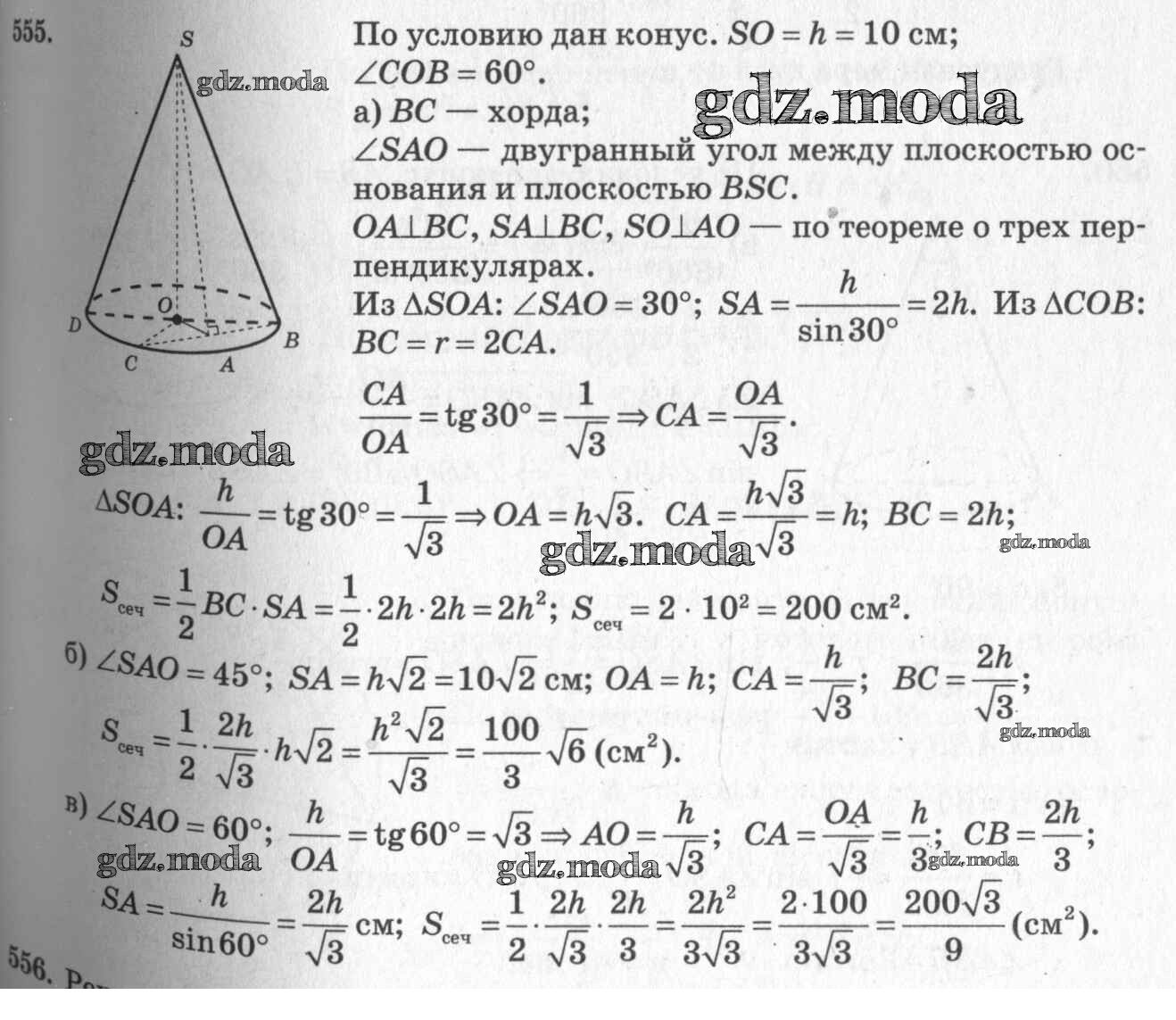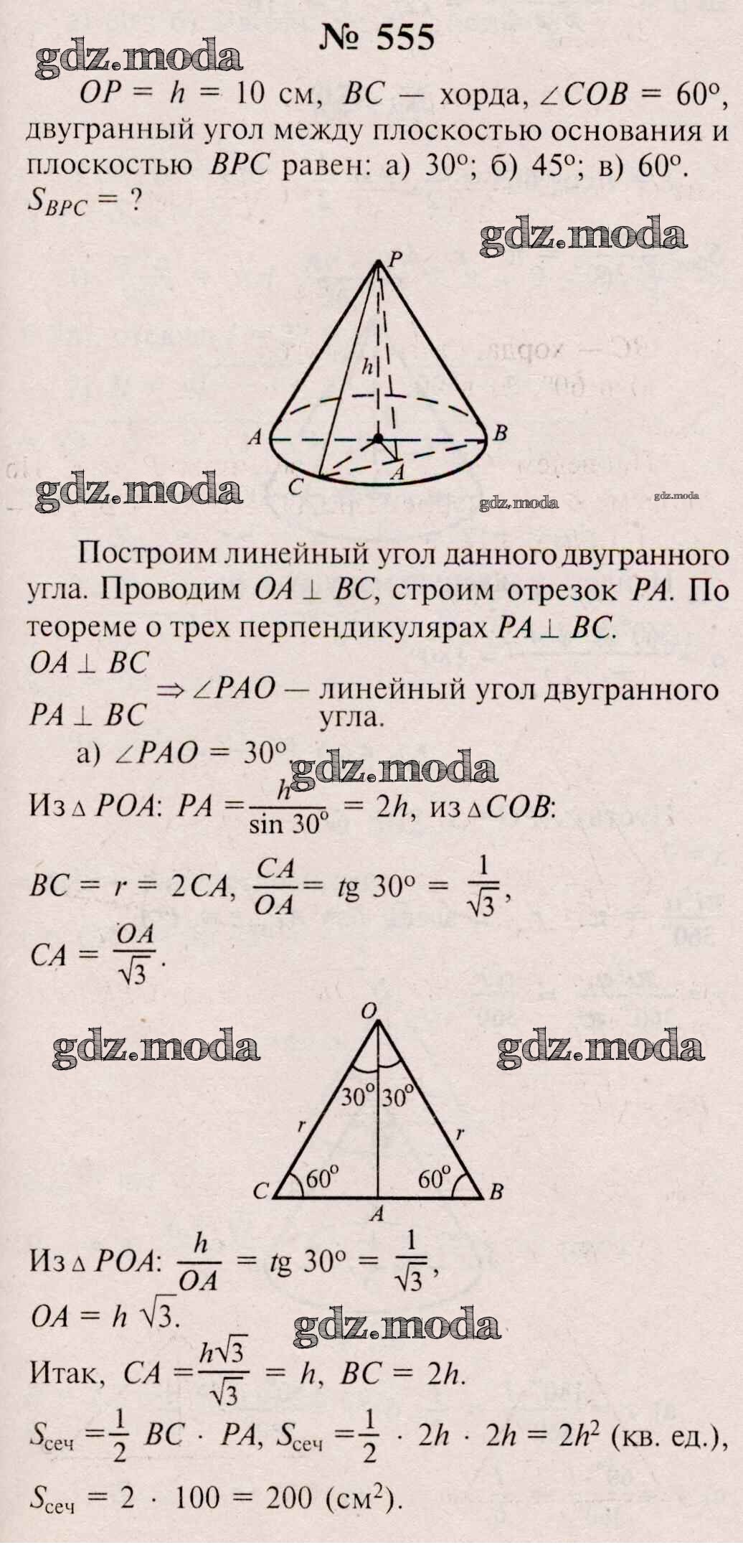 ОТВЕТ на задание № 555 Учебник по Геометрии 10-11 класс Атанасян Базовый и углубленный уровень