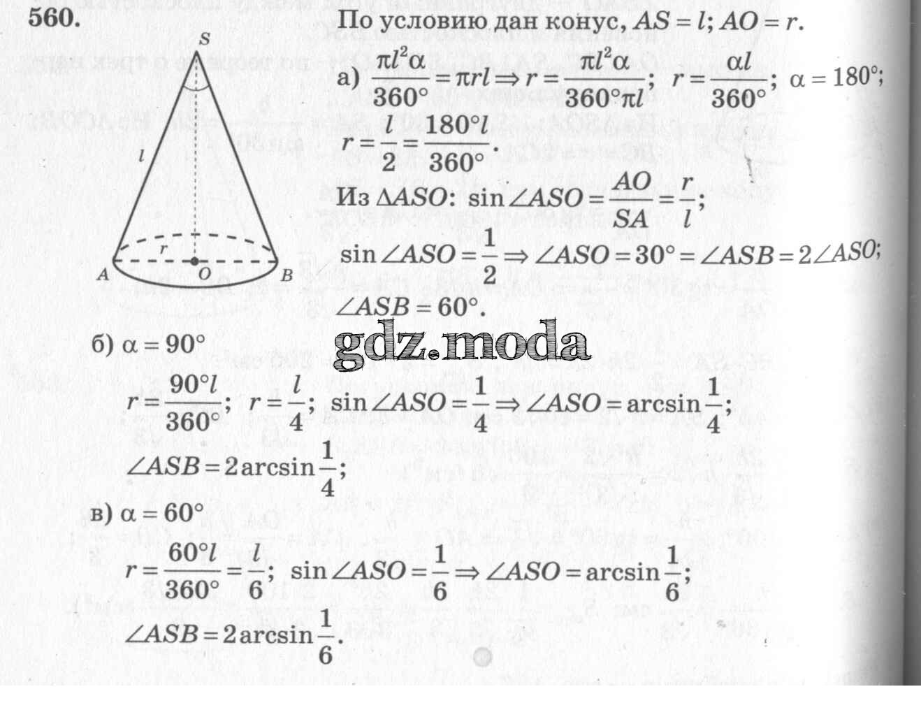 ОТВЕТ на задание № 560 Учебник по Геометрии 10-11 класс Атанасян Базовый и углубленный уровень