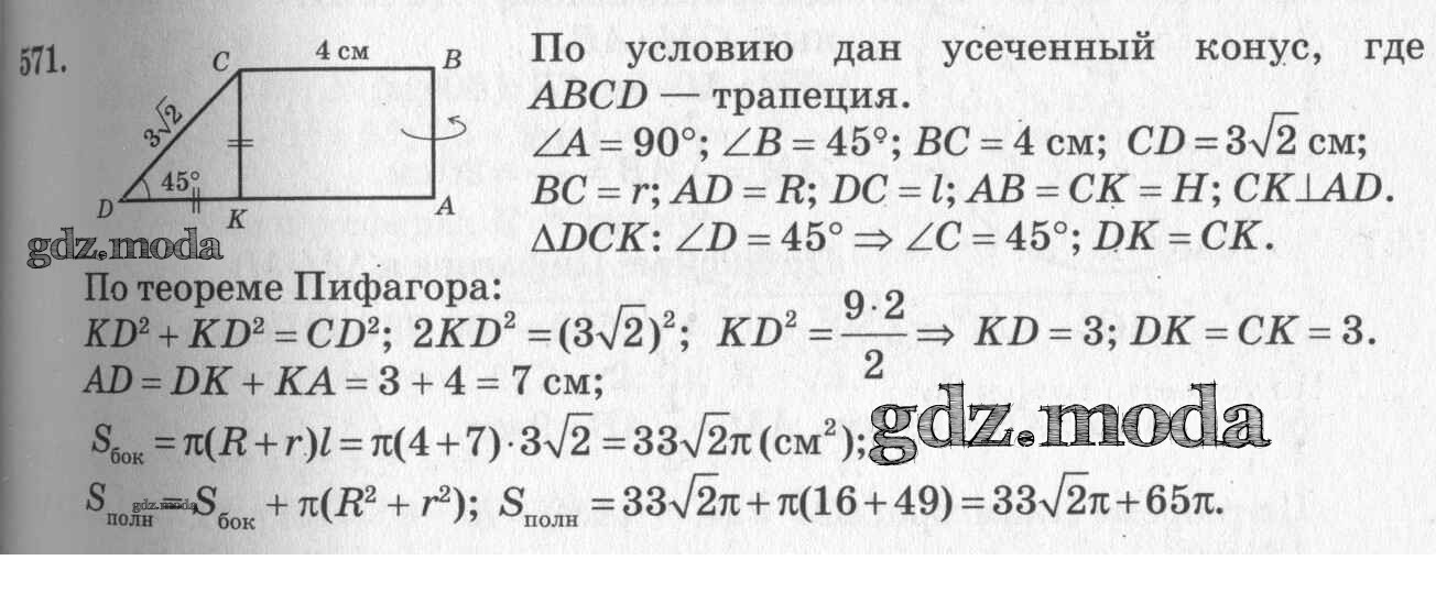 ОТВЕТ на задание № 571 Учебник по Геометрии 10-11 класс Атанасян Базовый и углубленный уровень