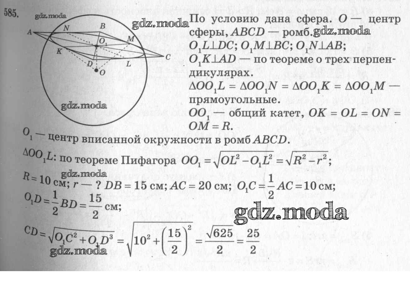 ОТВЕТ на задание № 585 Учебник по Геометрии 10-11 класс Атанасян Базовый и углубленный уровень