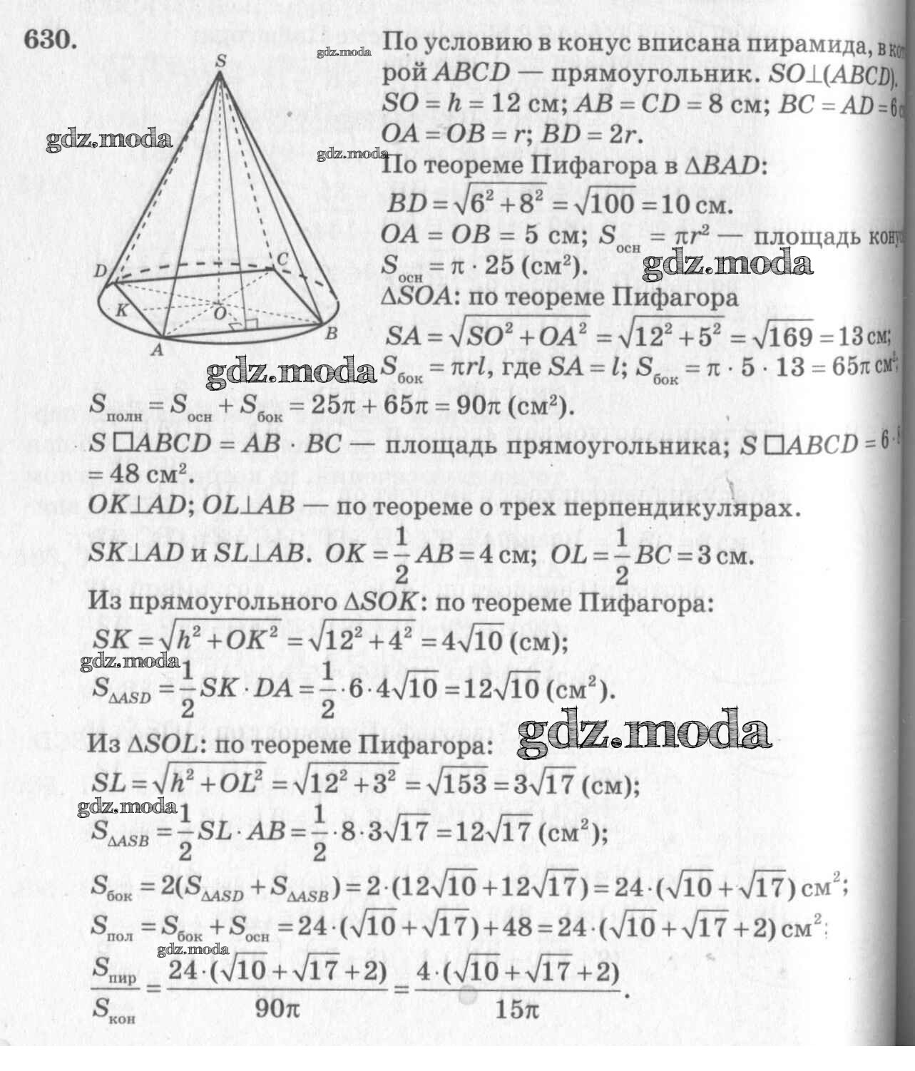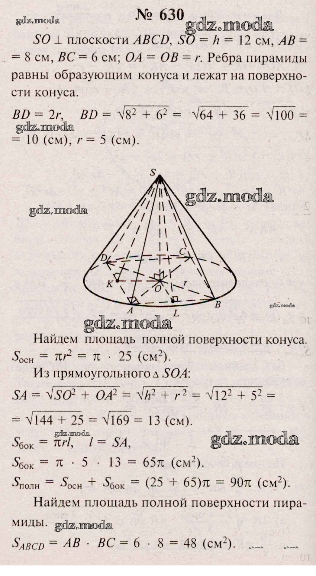 ОТВЕТ на задание № 630 Учебник по Геометрии 10-11 класс Атанасян Базовый и углубленный уровень