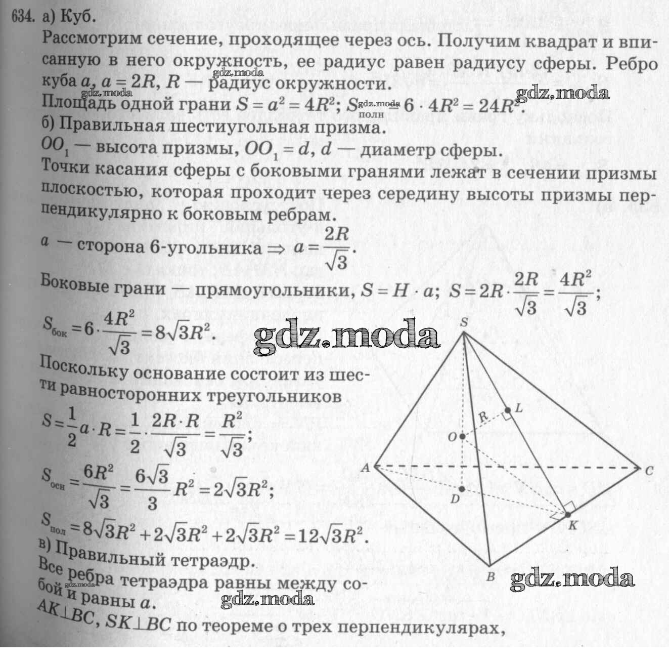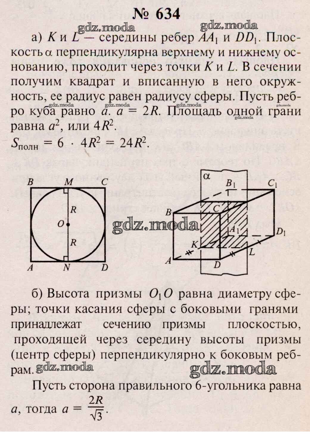 ОТВЕТ на задание № 634 Учебник по Геометрии 10-11 класс Атанасян Базовый и углубленный уровень