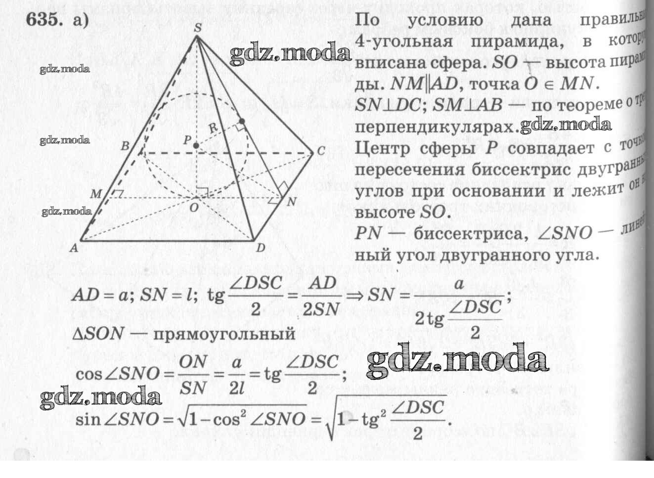 ОТВЕТ на задание № 635 Учебник по Геометрии 10-11 класс Атанасян Базовый и углубленный уровень