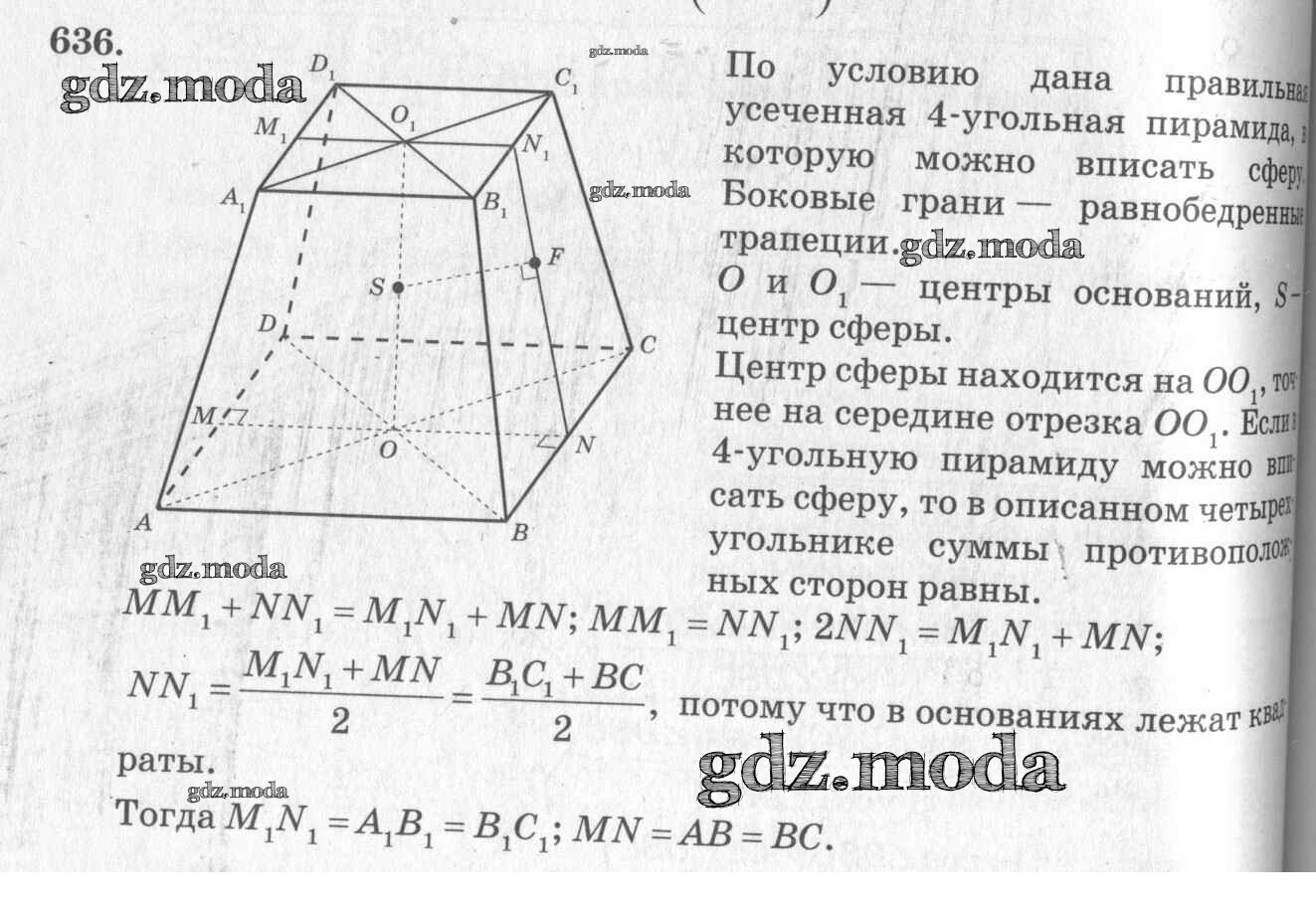 ОТВЕТ на задание № 636 Учебник по Геометрии 10-11 класс Атанасян Базовый и углубленный уровень