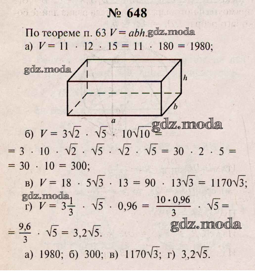 ОТВЕТ на задание № 648 Учебник по Геометрии 10-11 класс Атанасян Базовый и углубленный уровень