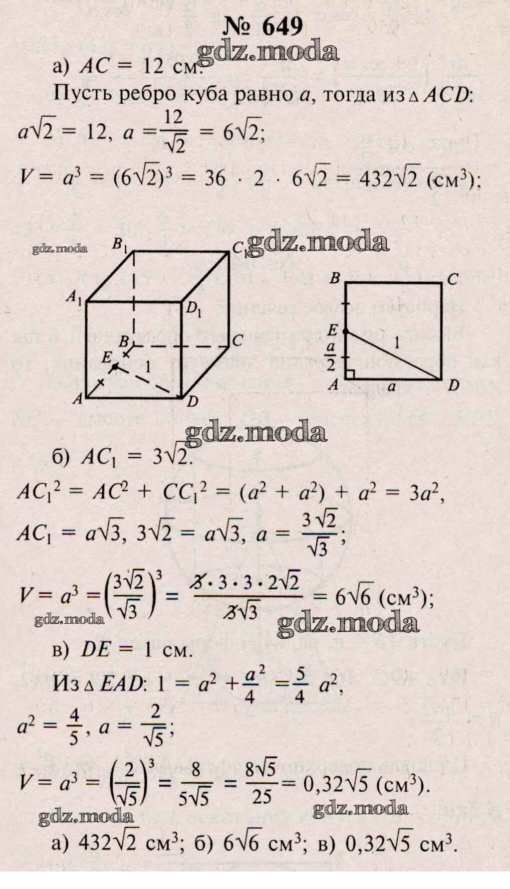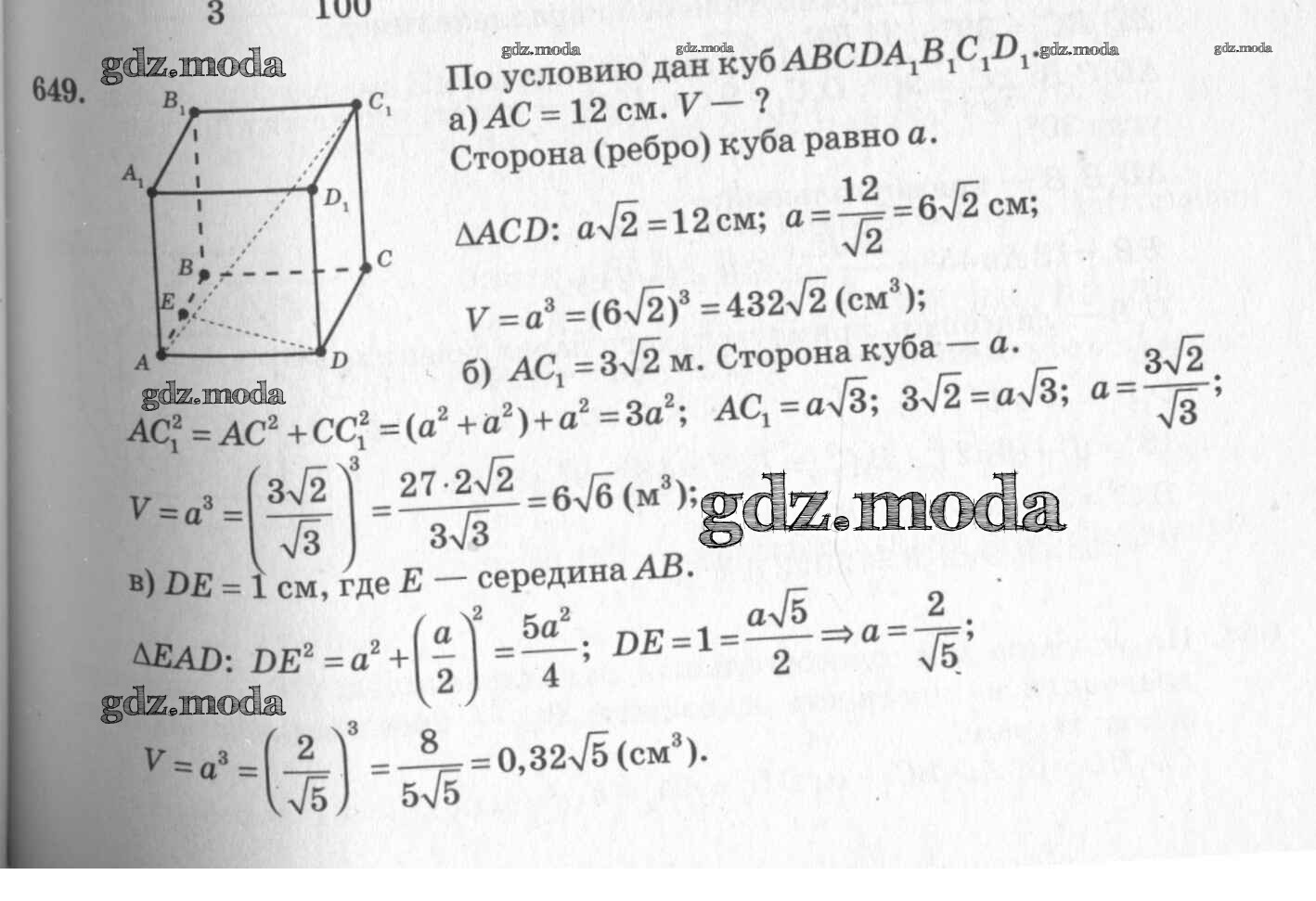 ОТВЕТ на задание № 649 Учебник по Геометрии 10-11 класс Атанасян Базовый и углубленный уровень