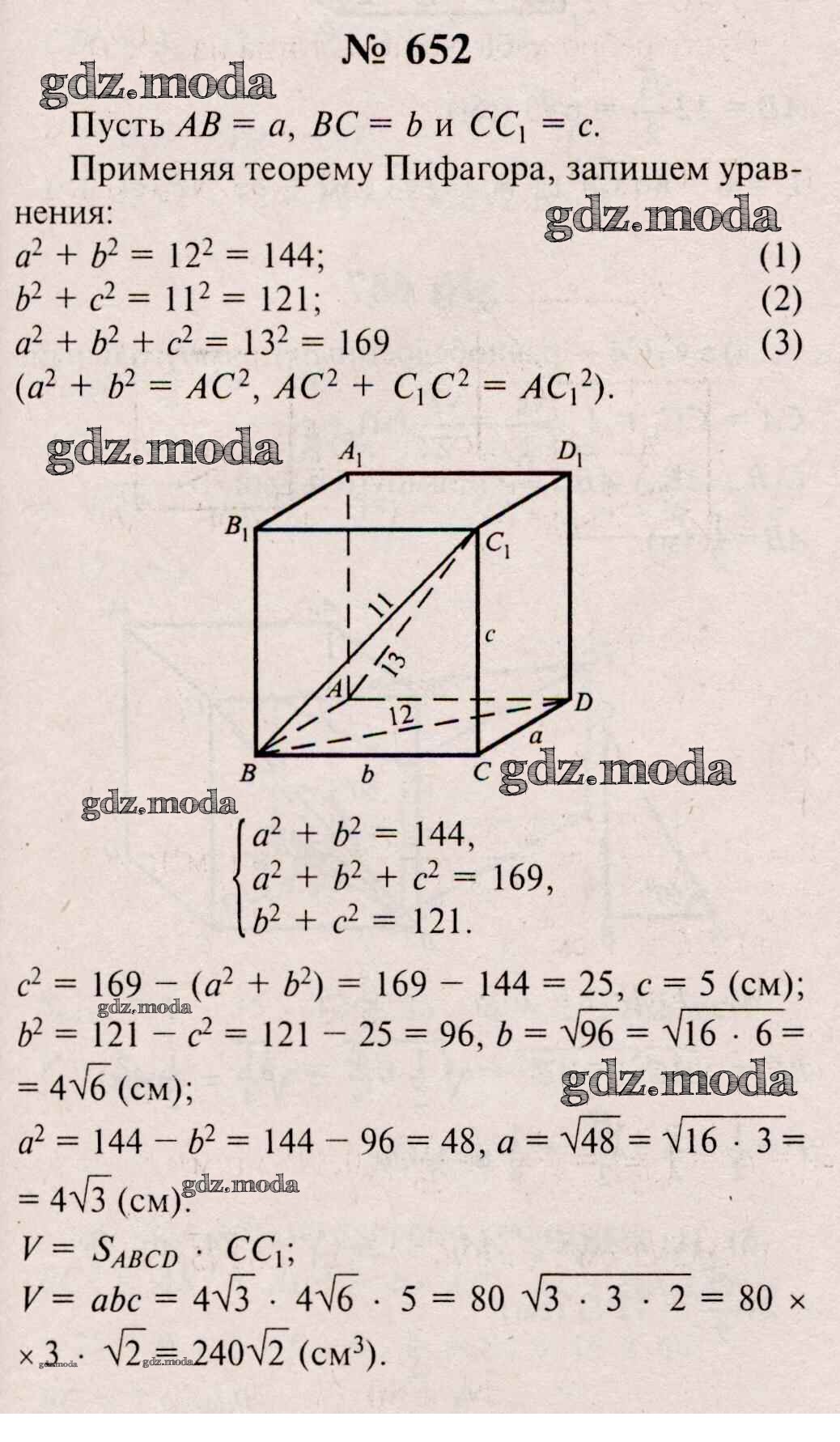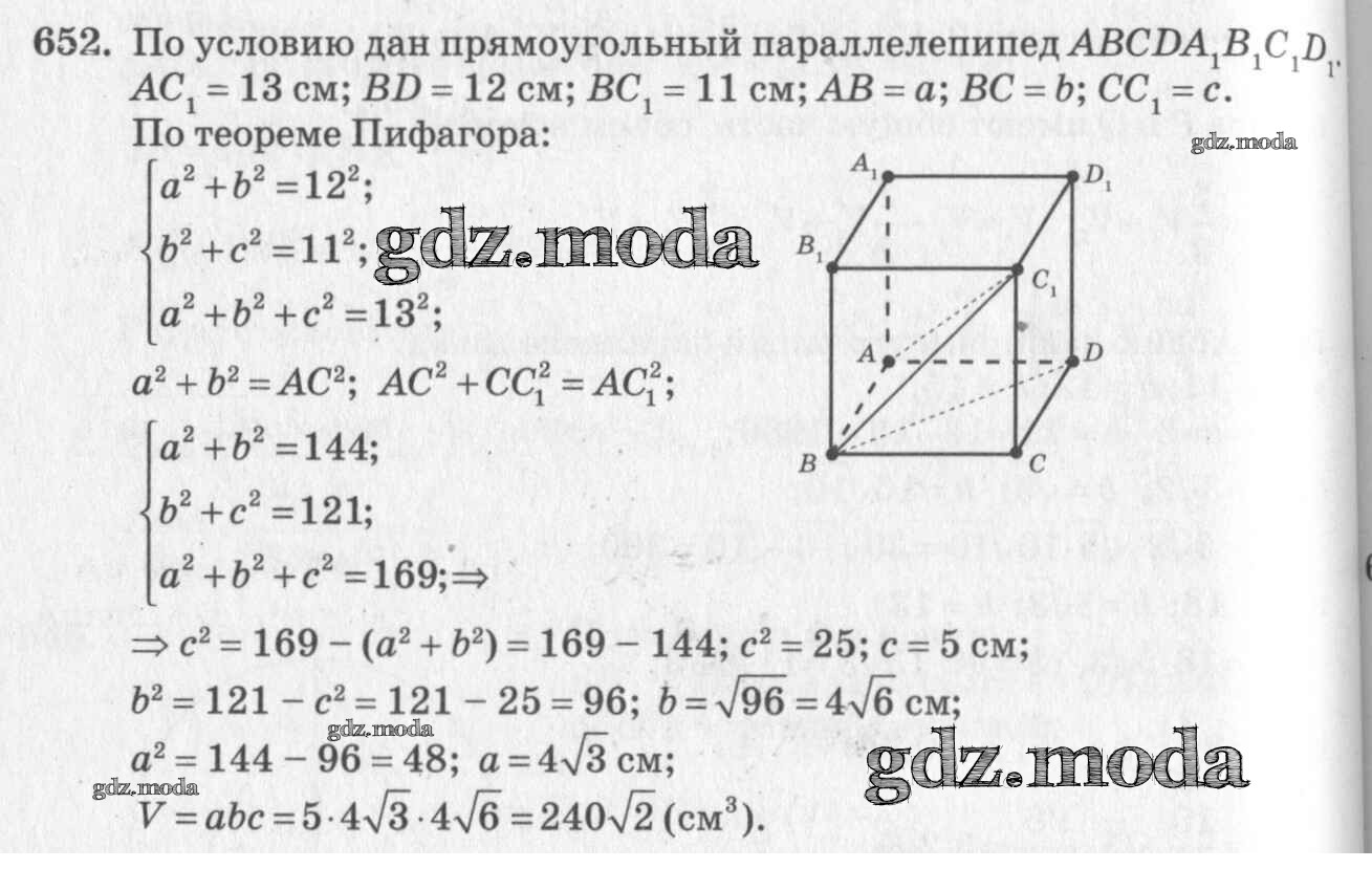 ОТВЕТ на задание № 652 Учебник по Геометрии 10-11 класс Атанасян Базовый и углубленный уровень
