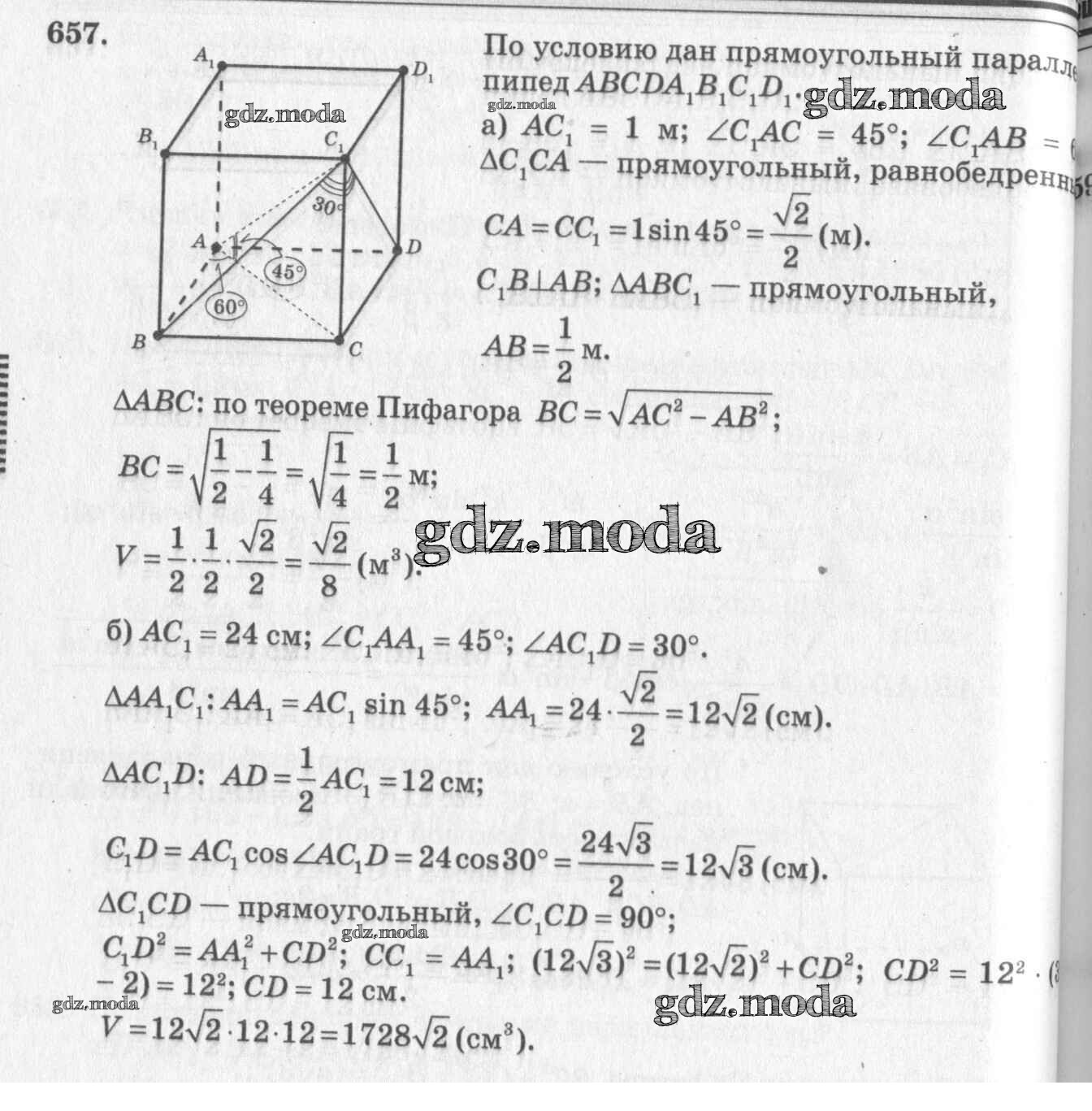 ОТВЕТ на задание № 657 Учебник по Геометрии 10-11 класс Атанасян Базовый и углубленный уровень