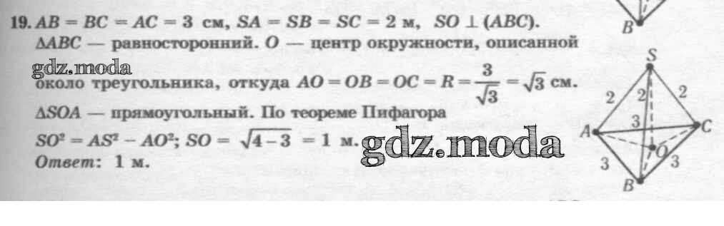 ОТВЕТ на задание № 19 Учебник по Геометрии 10-11 класс Погорелов