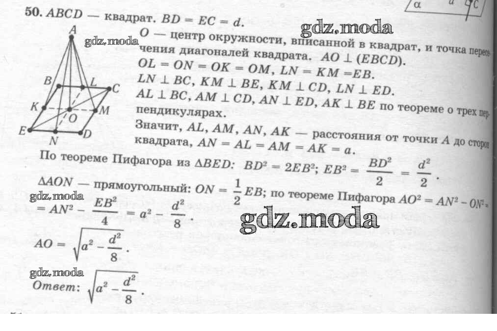 ГДЗ решение к заданию № 50 Геометрия 10-11 классы Погорелов Просвещение 2014 бесплатно на гдз.мода!