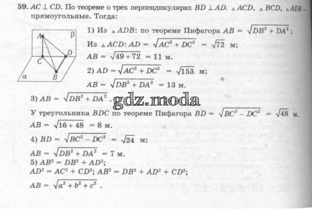 ГДЗ решение к заданию № 59 Геометрия 10-11 классы Погорелов Просвещение 2014 бесплатно на гдз.мода!