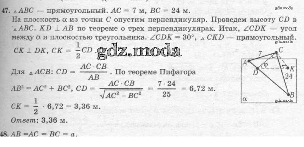 ОТВЕТ на задание № 47 Учебник по Геометрии 10-11 класс Погорелов