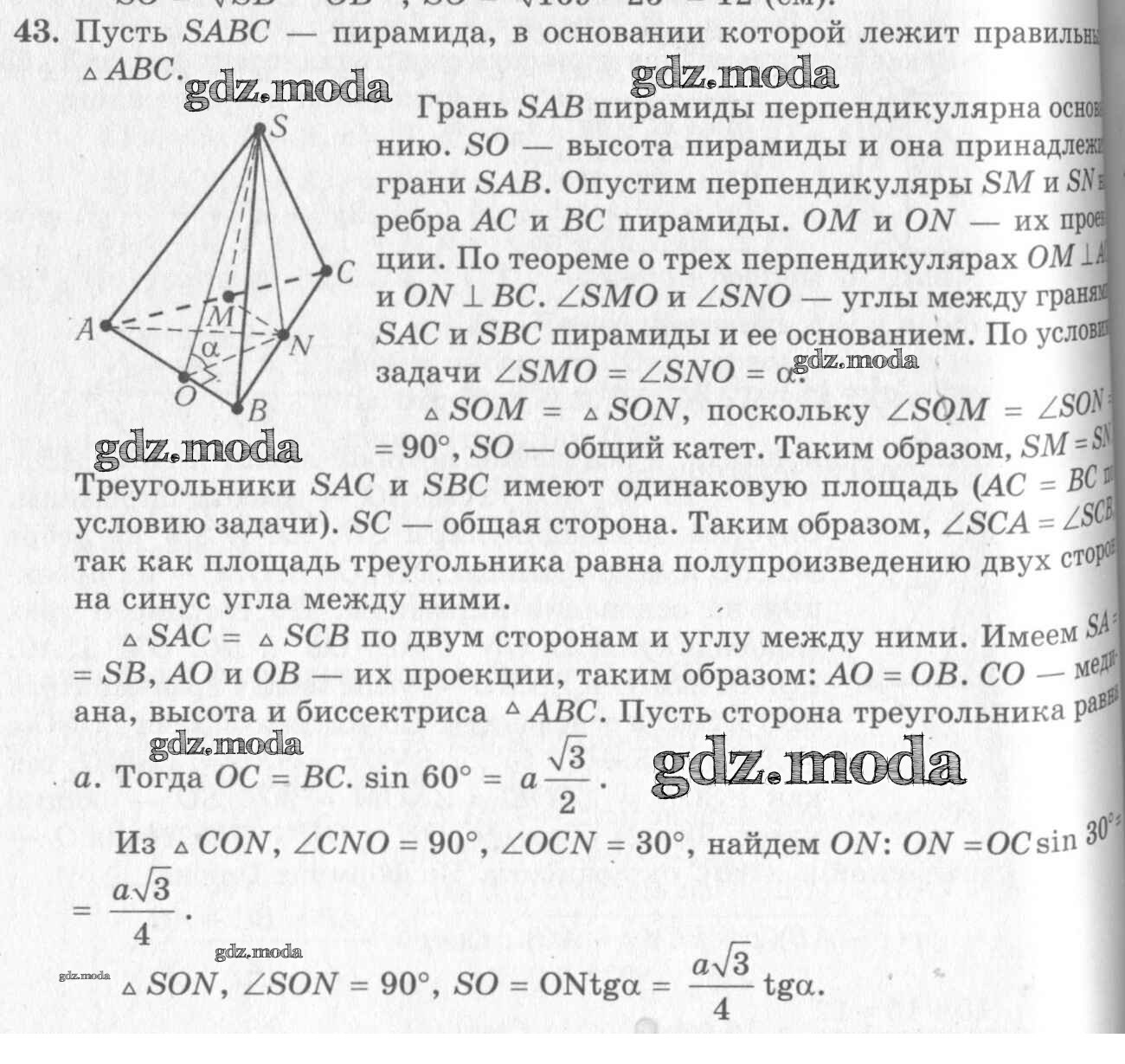 ОТВЕТ на задание № 43 Учебник по Геометрии 10-11 класс Погорелов