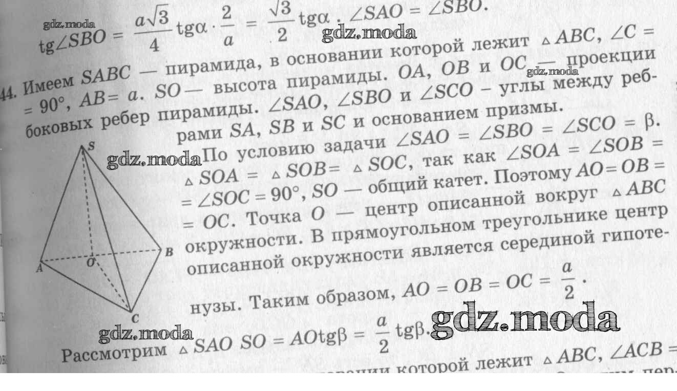 ОТВЕТ на задание № 44 Учебник по Геометрии 10-11 класс Погорелов