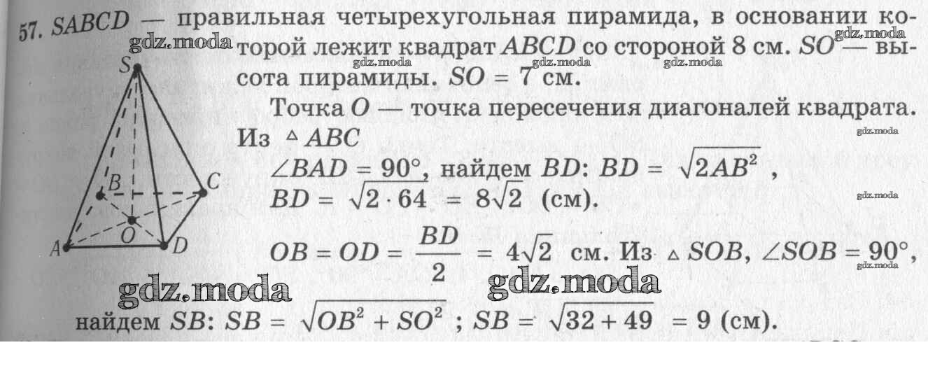 ГДЗ решение к заданию № 57 Геометрия 10-11 классы Погорелов Просвещение 2014 бесплатно на гдз.мода!