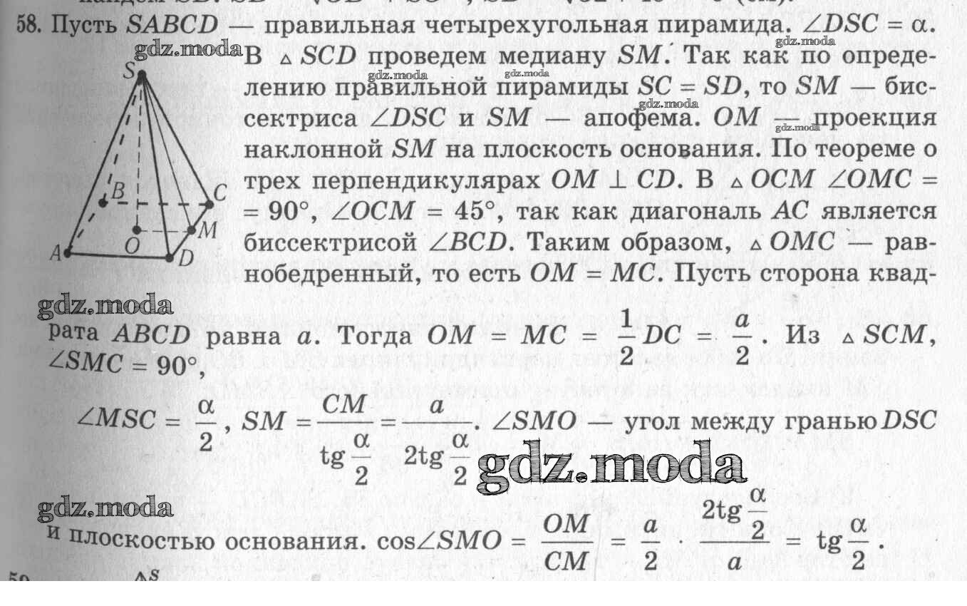 ГДЗ решение к заданию № 58 Геометрия 10-11 классы Погорелов Просвещение 2014 бесплатно на гдз.мода!