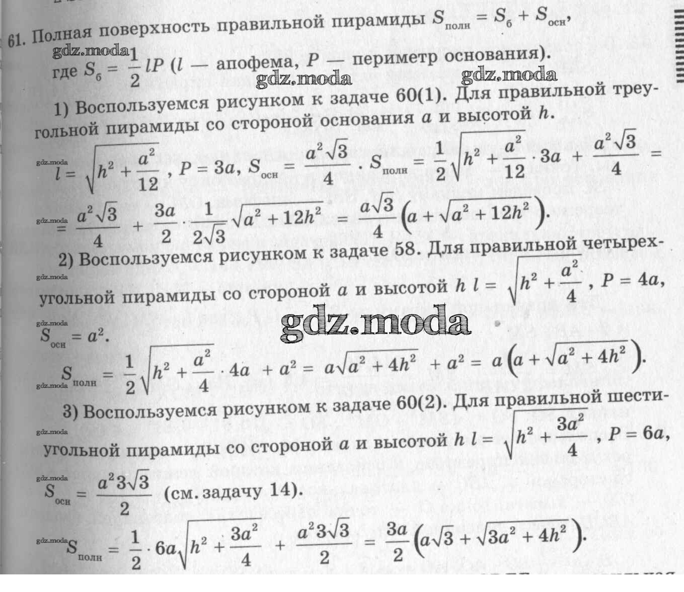 ГДЗ решение к заданию № 61 Геометрия 10-11 классы Погорелов Просвещение 2014 бесплатно на гдз.мода!