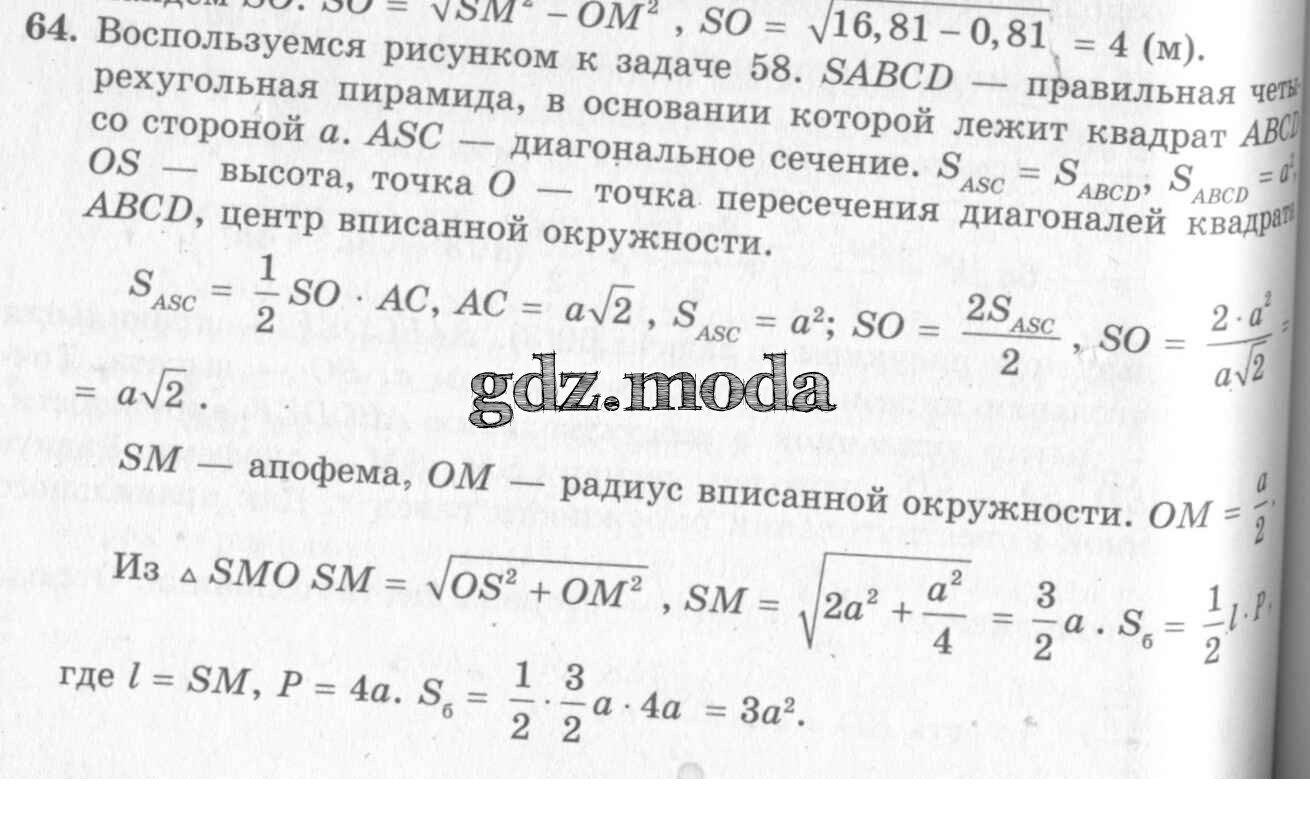 ГДЗ решение к заданию № 64 Геометрия 10-11 классы Погорелов Просвещение 2014 бесплатно на гдз.мода!