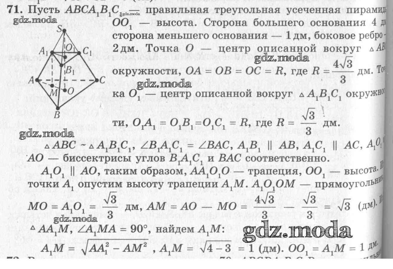 ГДЗ решение к заданию № 71 Геометрия 10-11 классы Погорелов Просвещение 2014 бесплатно на гдз.мода!