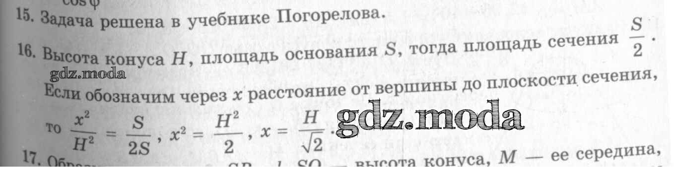 ОТВЕТ на задание № 16 Учебник по Геометрии 10-11 класс Погорелов