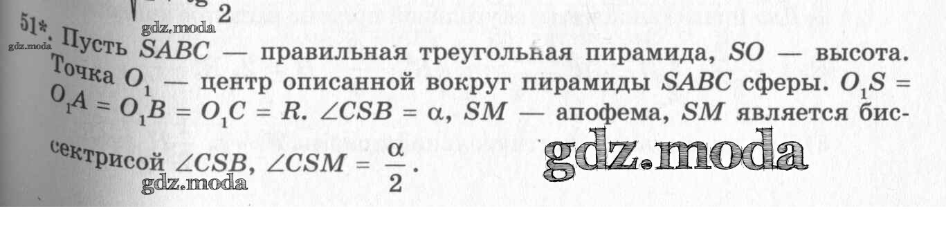 ОТВЕТ на задание № 51 Учебник по Геометрии 10-11 класс Погорелов