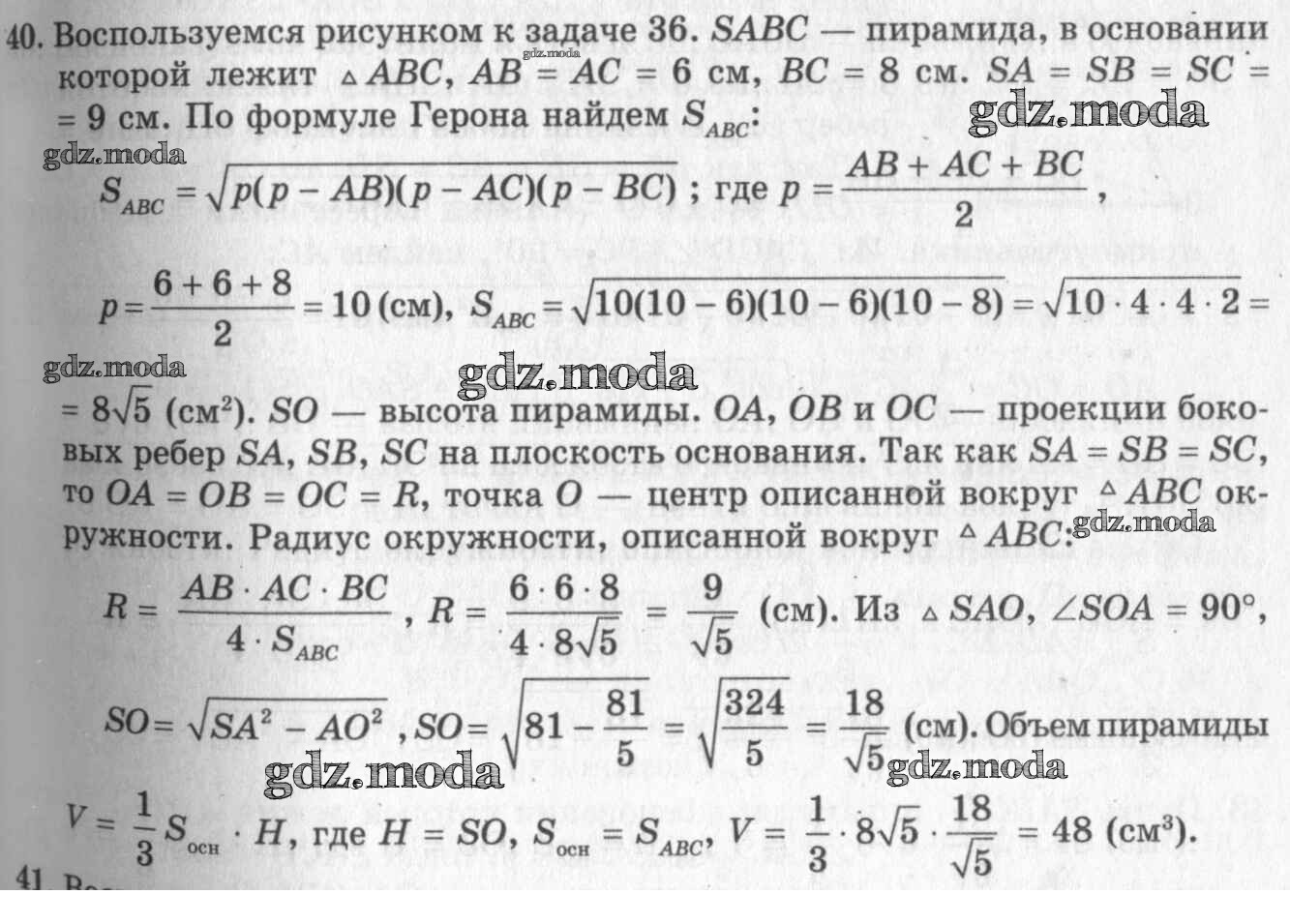 ОТВЕТ на задание № 40 Учебник по Геометрии 10-11 класс Погорелов
