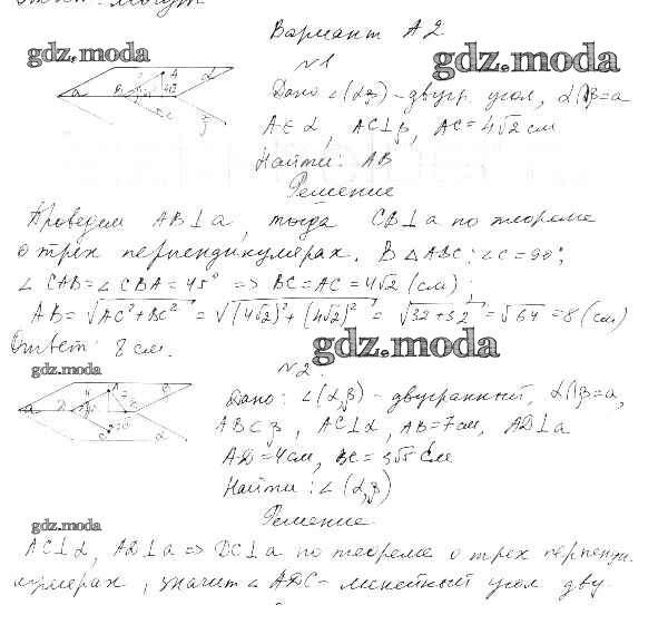 ГДЗ решение к заданию № А2 Геометрия 11 класс самостоятельные и контрольные работы Ершова А.П. Илекса 2004 ФГОС бесплатно на гдз.мода!