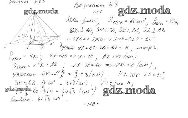 ГДЗ решение к заданию № Б1 Геометрия 11 класс самостоятельные и контрольные работы Ершова А.П. Илекса 2004 ФГОС бесплатно на гдз.мода!