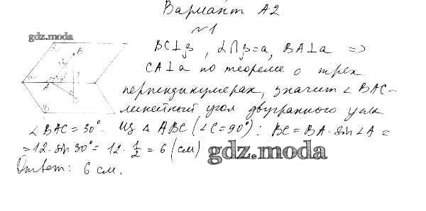 ГДЗ решение к заданию № А2 Геометрия 11 класс самостоятельные и контрольные работы Ершова А.П. Илекса 2004 ФГОС бесплатно на гдз.мода!
