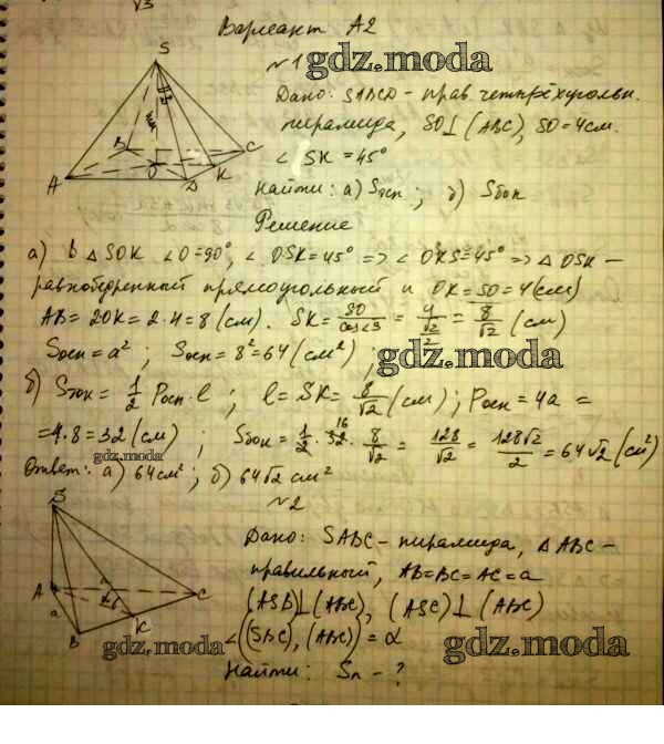 ГДЗ решение к заданию № А2 Геометрия 11 класс самостоятельные и контрольные работы Ершова А.П. Илекса 2004 ФГОС бесплатно на гдз.мода!