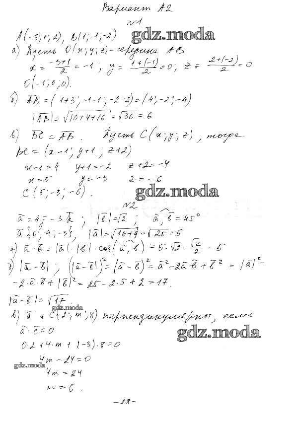 к учебнику Атанасяна 10-11 / контрольная работа / кр-1. вариант / А2