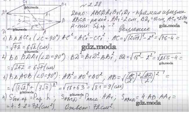 ОТВЕТ на задание № 2.28 Учебник по Геометрии 11 класс Мерзляк Алгоритм успеха Базовый уровень