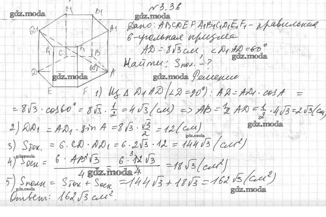 ОТВЕТ на задание № 3.36 Учебник по Геометрии 11 класс Мерзляк Алгоритм успеха Базовый уровень