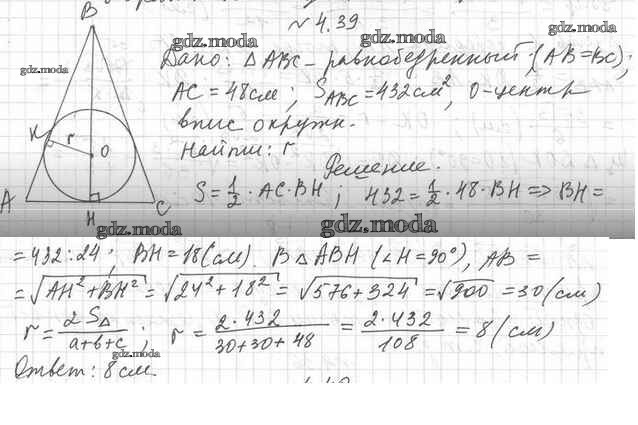 ОТВЕТ на задание № 4.39 Учебник по Геометрии 11 класс Мерзляк Алгоритм успеха Базовый уровень