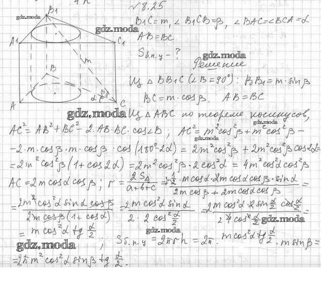 ОТВЕТ на задание № 8.25 Учебник по Геометрии 11 класс Мерзляк Алгоритм успеха Базовый уровень