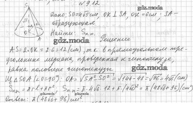 ОТВЕТ на задание № 9.12 Учебник по Геометрии 11 класс Мерзляк Алгоритм успеха Базовый уровень