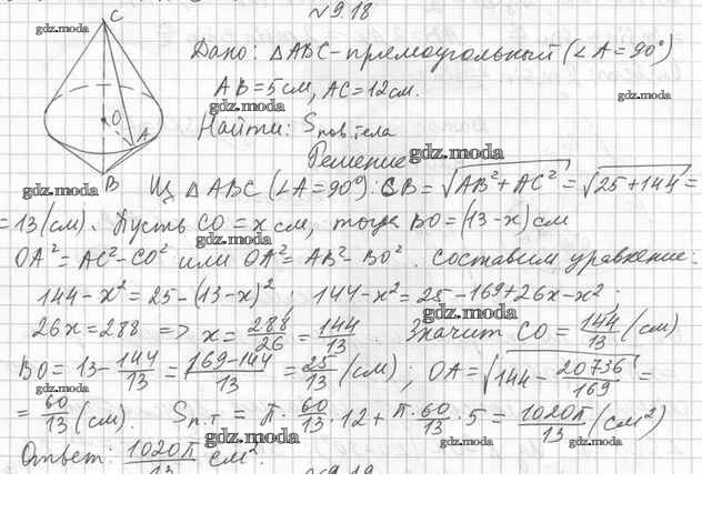 ОТВЕТ на задание № 9.18 Учебник по Геометрии 11 класс Мерзляк Алгоритм успеха Базовый уровень