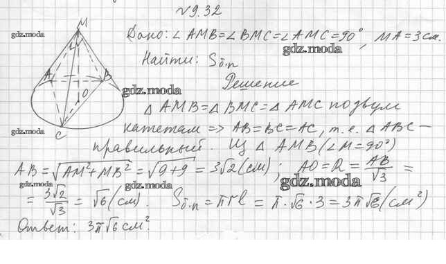 ОТВЕТ на задание № 9.32 Учебник по Геометрии 11 класс Мерзляк Алгоритм успеха Базовый уровень