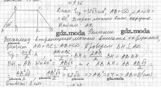ОТВЕТ на задание № 9.36 Учебник по Геометрии 11 класс Мерзляк Алгоритм успеха Базовый уровень