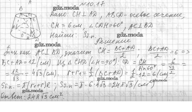 ОТВЕТ на задание № 10.17 Учебник по Геометрии 11 класс Мерзляк Алгоритм успеха Базовый уровень