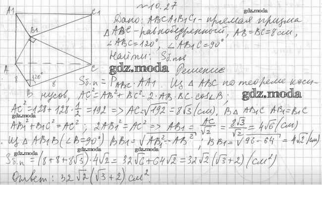 ГДЗ решение к заданию № 10.27 Геометрия 11 класс Мерзляк А.Г. Вентана-граф 2019 Базовый уровень ФГОС бесплатно на гдз.мода!