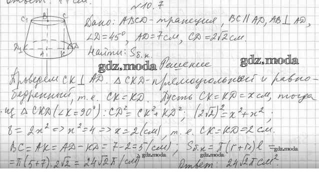 ГДЗ решение к заданию № 10.7 Геометрия 11 класс Мерзляк А.Г. Вентана-граф 2019 Базовый уровень ФГОС бесплатно на гдз.мода!