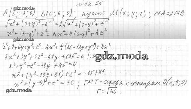 ОТВЕТ на задание № 12.25 Учебник по Геометрии 11 класс Мерзляк Алгоритм успеха Базовый уровень